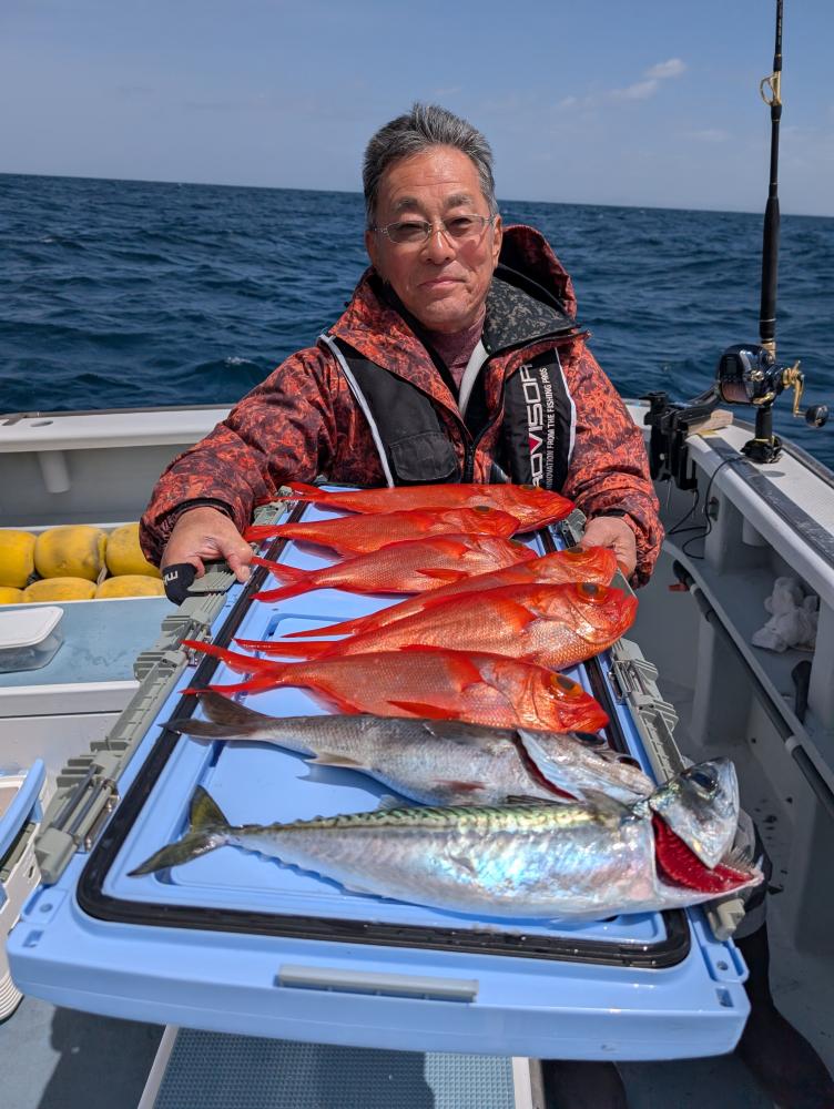 キンメダイ、ポツリポツリのアタリでクロムツ・スミヤキなども交じりましたが南西の風強くなり、早めの帰港となりました