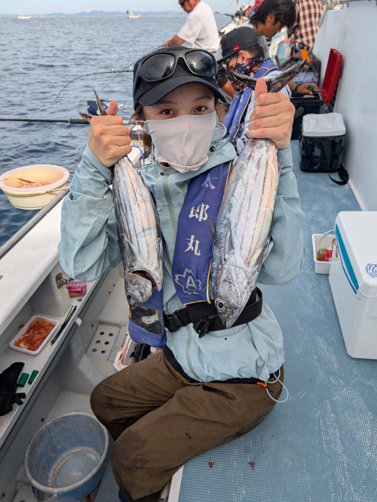 船釣り初挑戦レンタルタックルの方も多くご乗船でカツオ狙い。