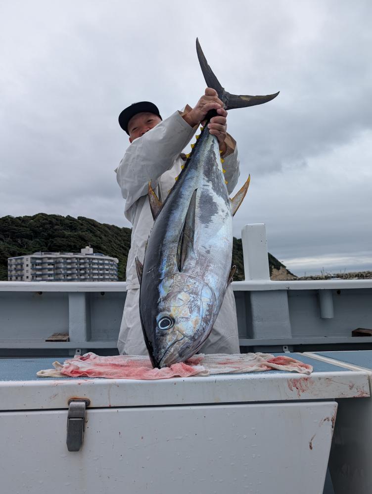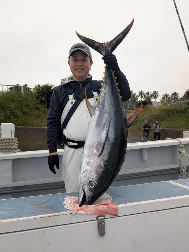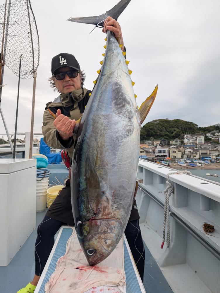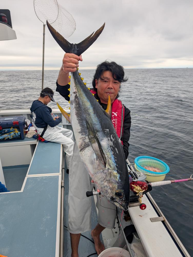 マグロ狙い変更してから、ミチイト切れ・ハリス切れ・テンビンが折れたぁ~~~!などしながらもレンタルタックルのお客様、お見事!!50kgゲット!!