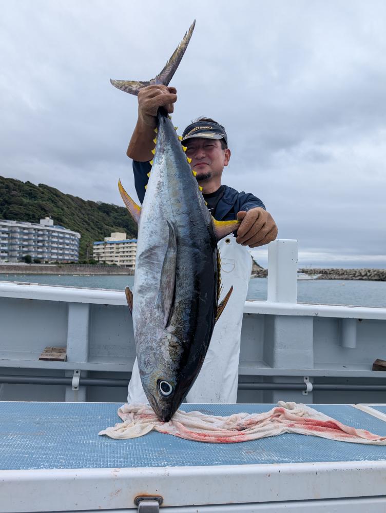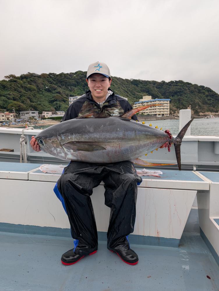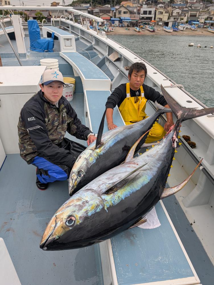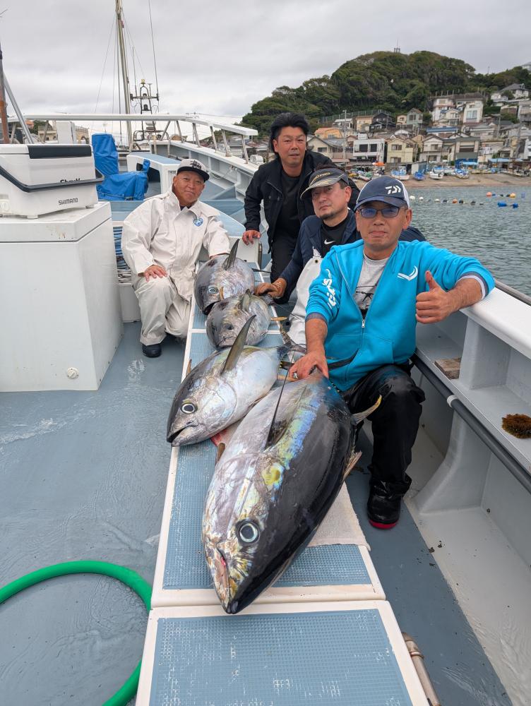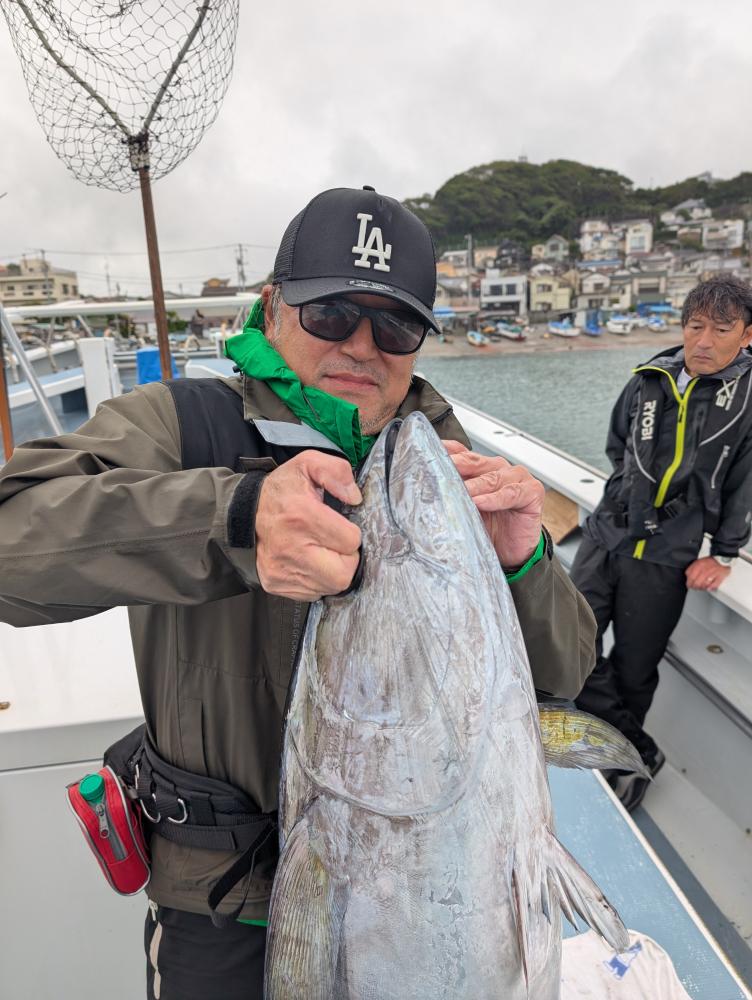 マグロ狙い変更してから、ミチイト切れ・ハリス切れ・テンビンが折れたぁ~~~!などしながらもレンタルタックルのお客様、お見事!!50kgゲット!!