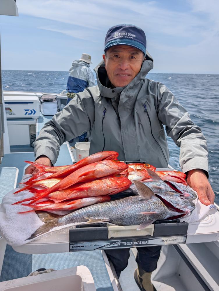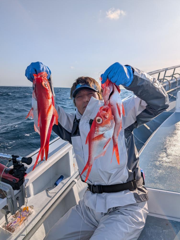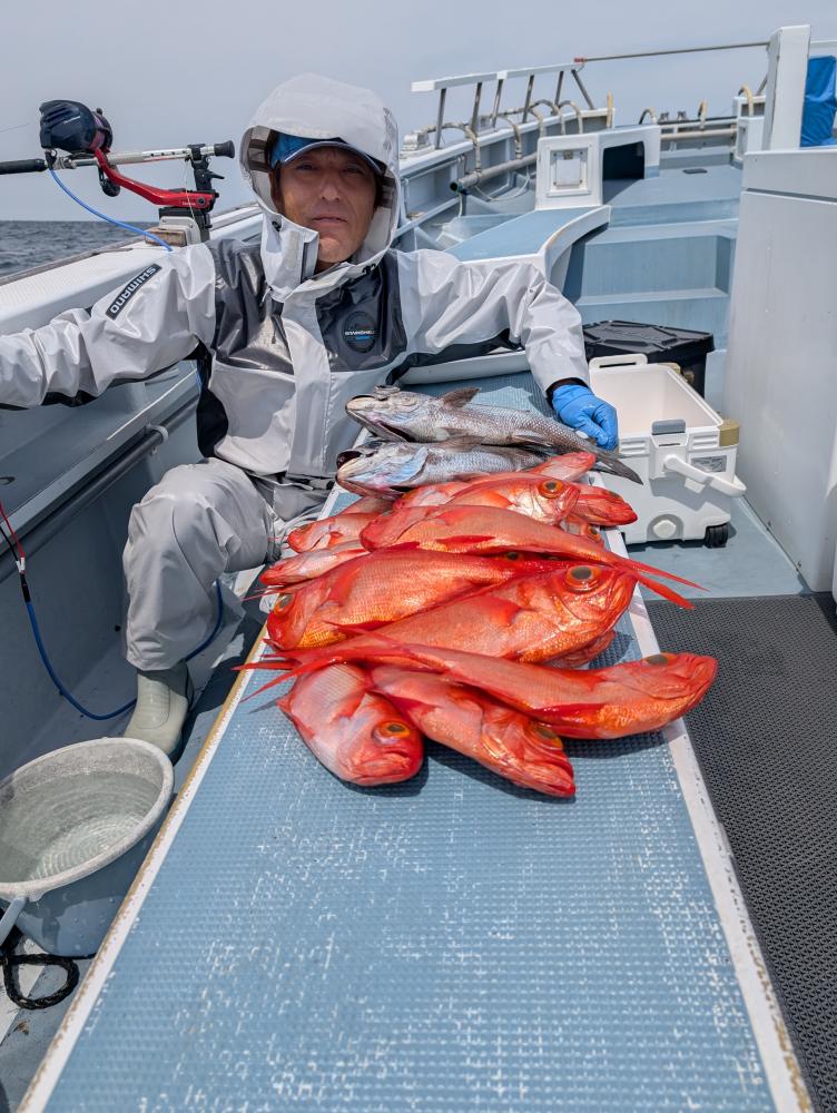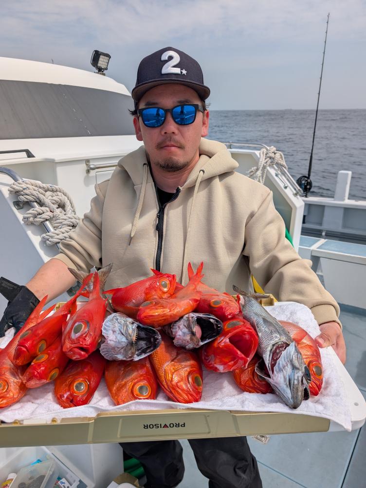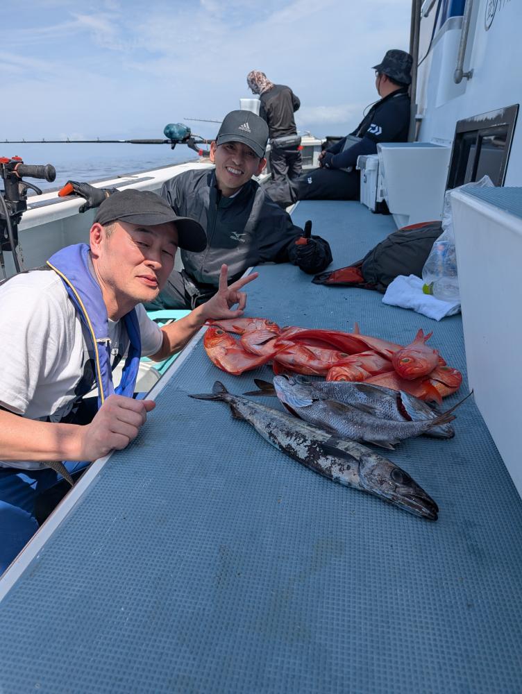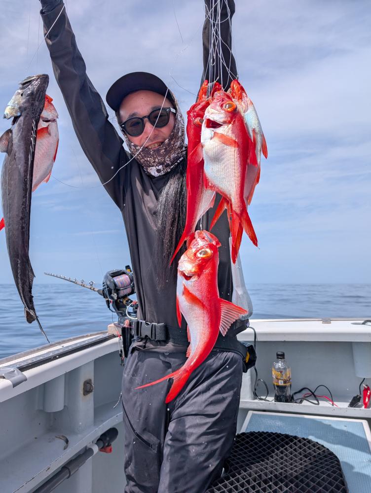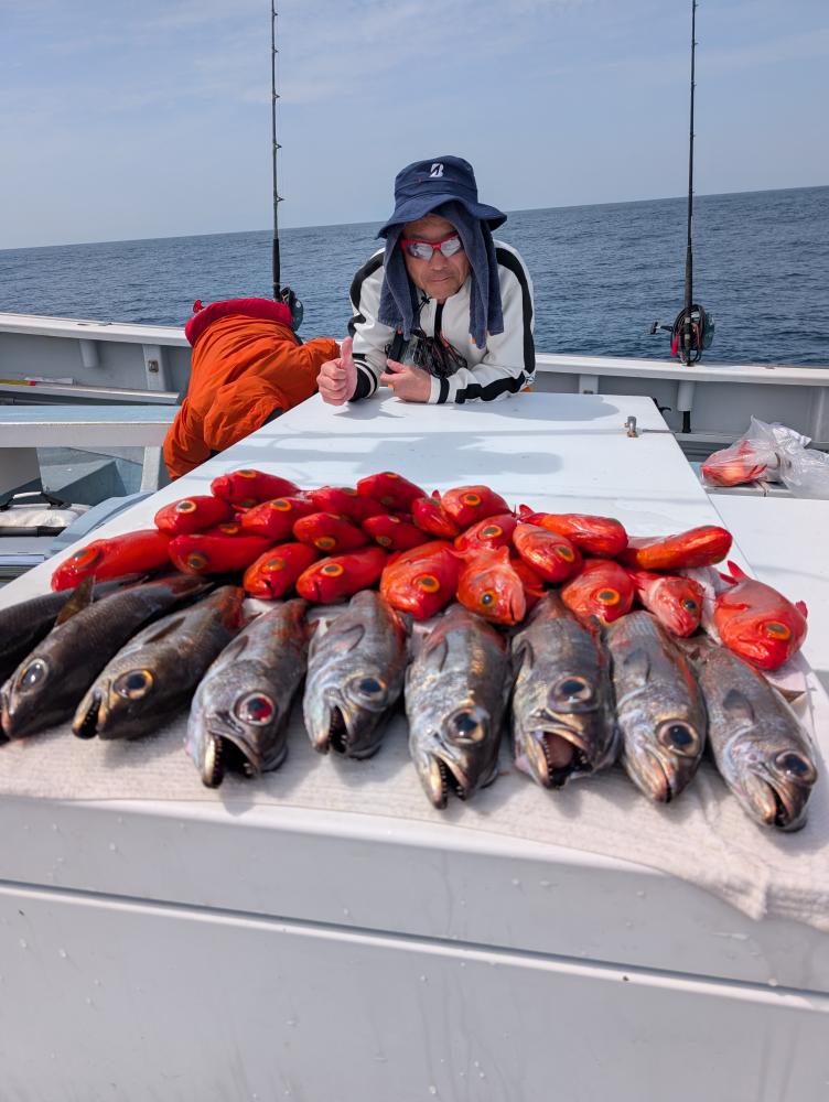 ポイントへ到着すると、潮濁り浅場でキンメダイ良型交じりで、クロムツ・メダイ・深海サバ交じりでポツポツとあがりお土産キープできました〜!!