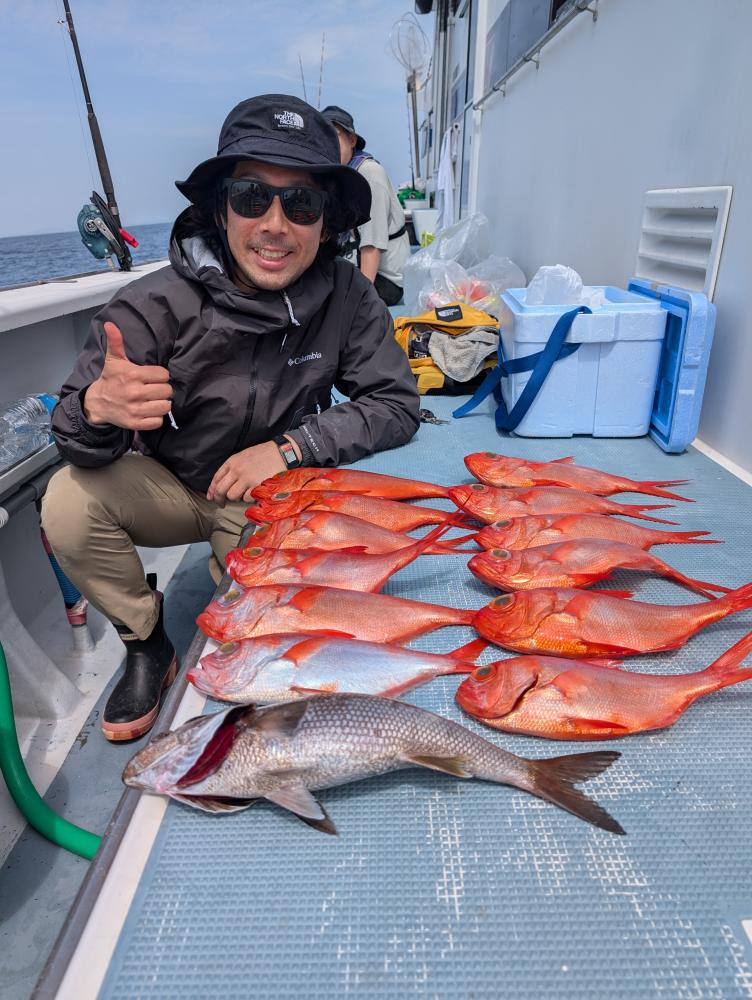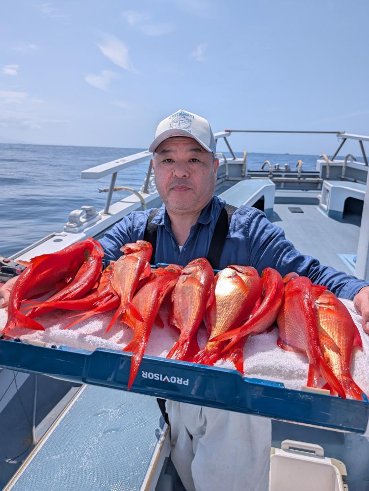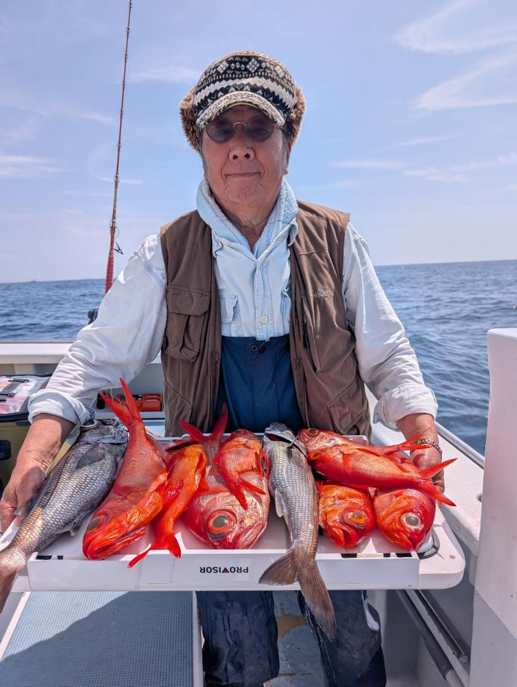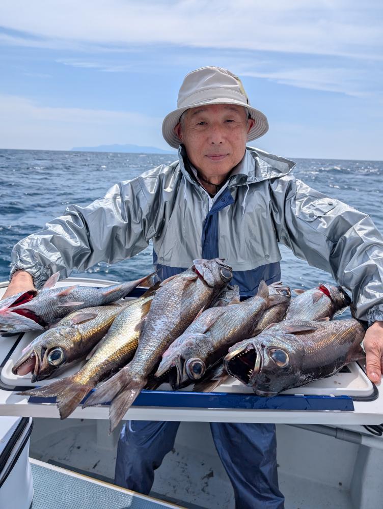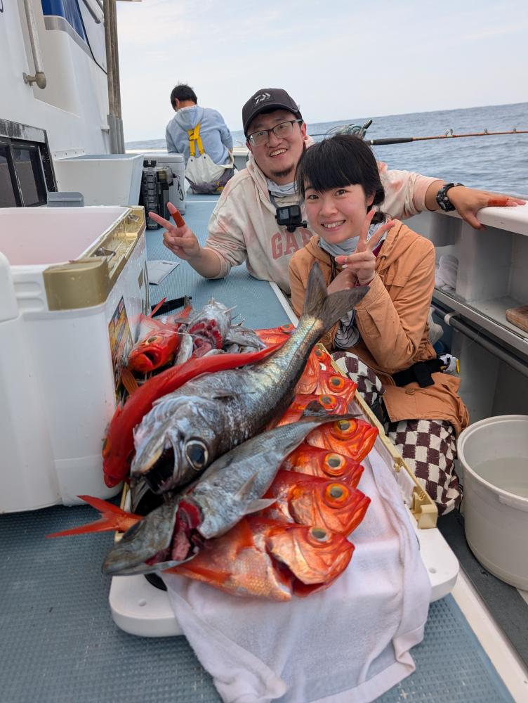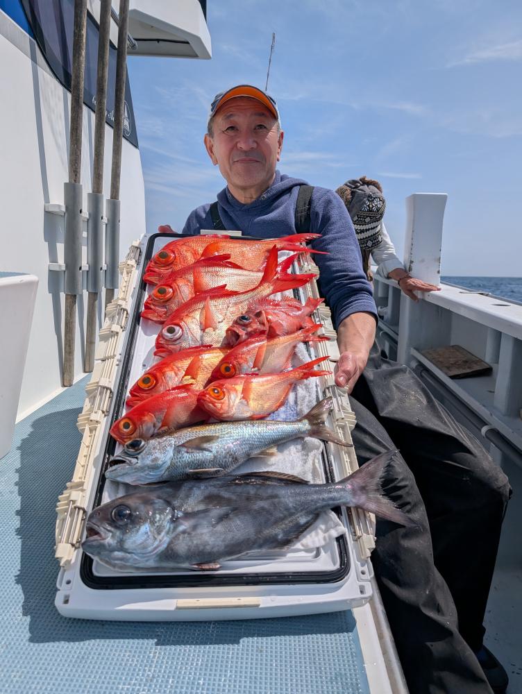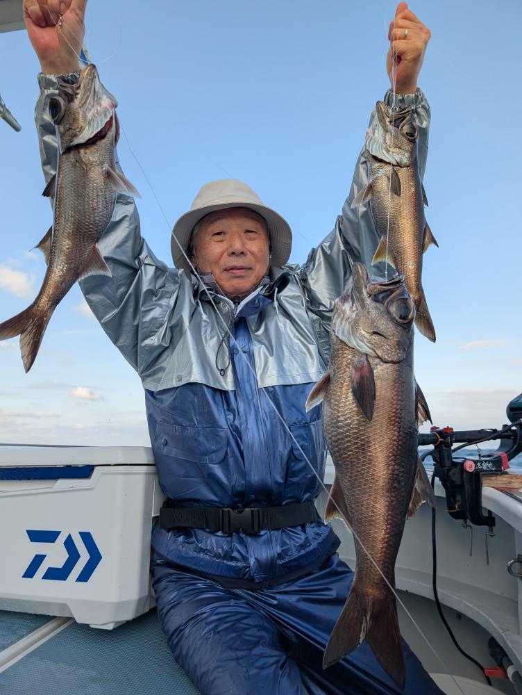 ポイントへ到着すると、潮濁り浅場でキンメダイ良型交じりで、クロムツ・メダイ・深海サバ交じりでポツポツとあがりお土産キープできました〜!!