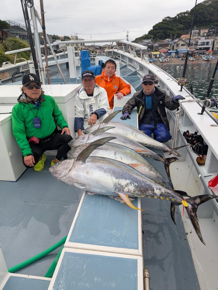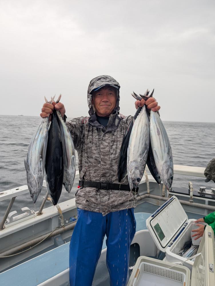 マグロ狙いではハリス切れ、ミチ糸切れなどありましたがキメジ交じりで15打数7安打で・19kg・22kg・25kg・28kgゲット!!